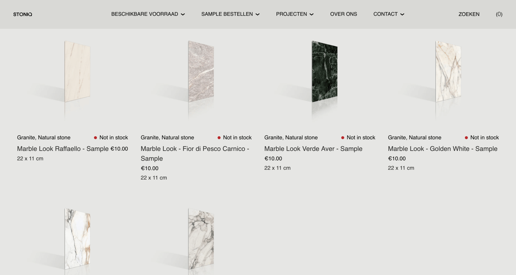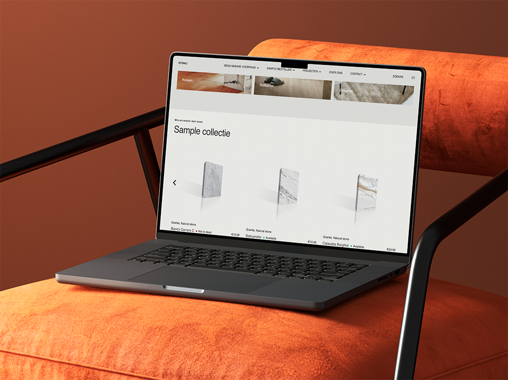 During their process of rebranding Stoniq asked me to create two digital mockups for their marazzi and natural stone samples. After creating the mockups I added cutouts of their profided slab-images to create a series of product images for their webshop.